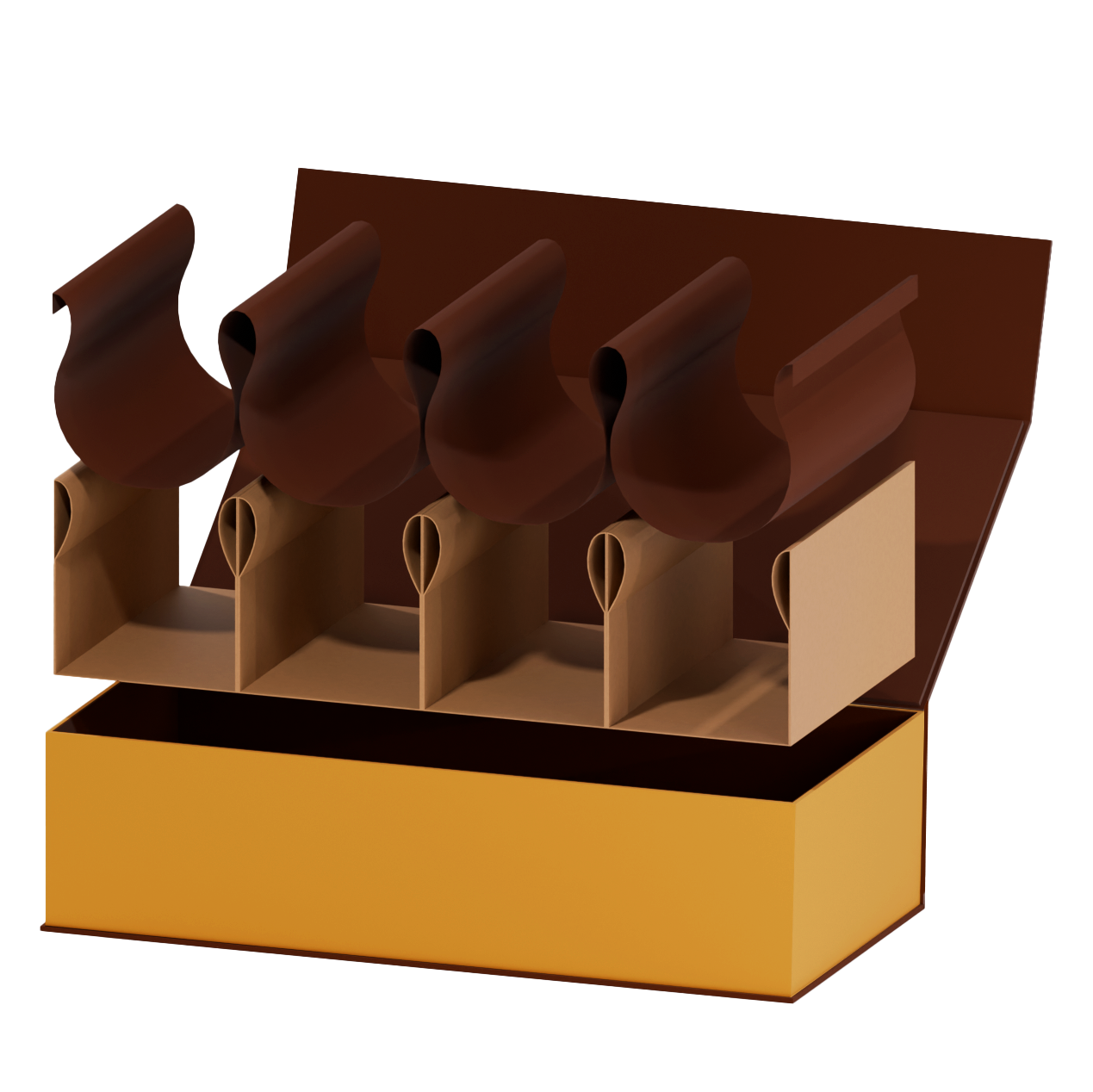 Built around the needs of NC Chocolatier’s signature caramel apples, this packaging system transforms an awkward product shape into a refined luxury experience. The custom inlay secures each apple during transit, then releases it cleanly when opened, balancing protection, presentation, and ease of use.