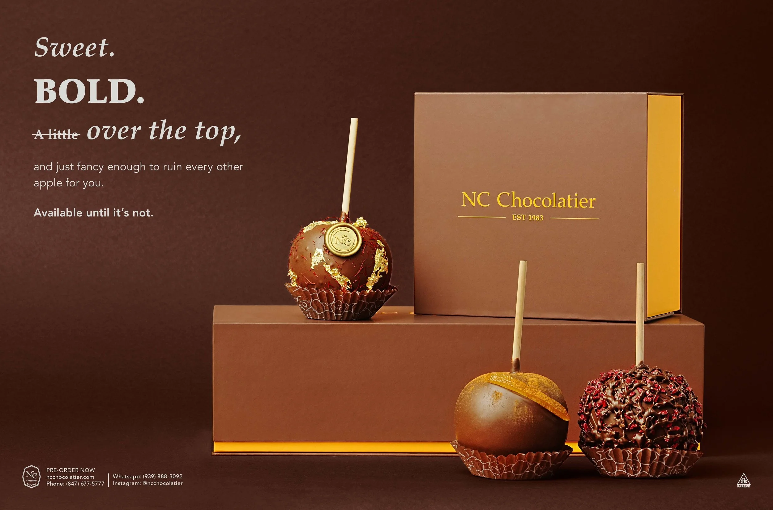 Packaging and campaign material for over-the-top caramel apples.
